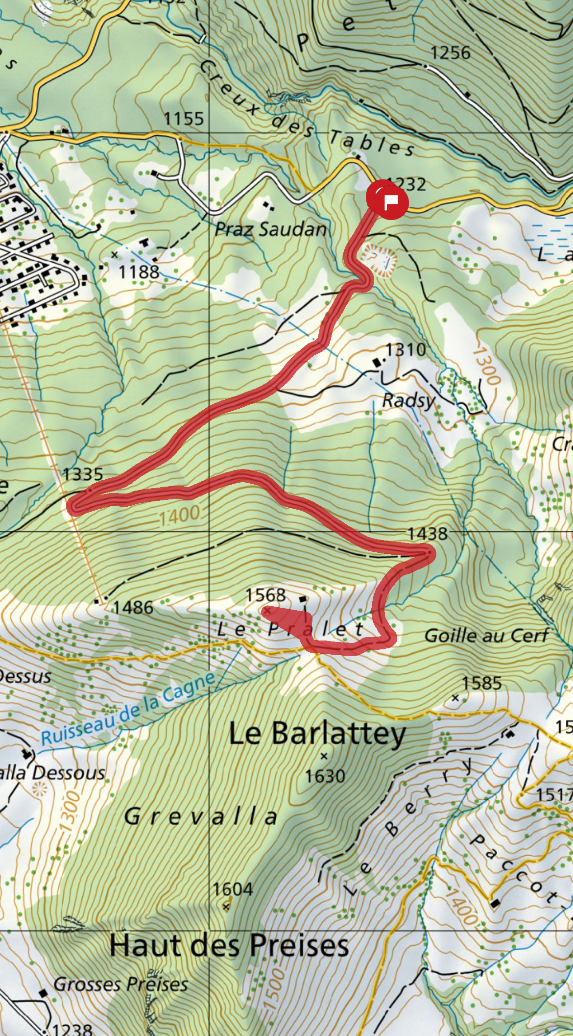 J’ai parqué ma voiture (ici) : c’est un petit parking gratuit qui, je pense, peut vite se remplir. De là, j’ai suivi le chemin du Radsy, qui en été est une route goudronnée. Cette route mène à un chalet ; le sommet est juste au-dessus du chalet ! Pour le retour, j’ai emprunté le même sentier.